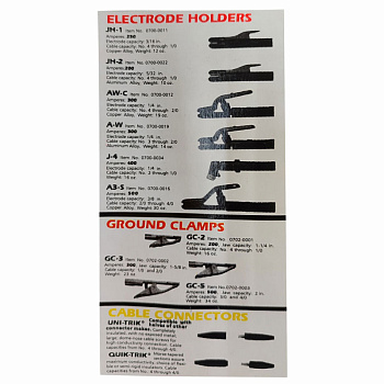 - Зажимы и держатели: держатели электродов, массы, кабельные зажимы.