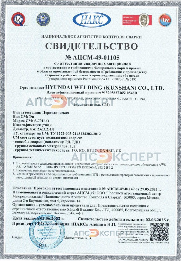 - Сертификация: НАКС